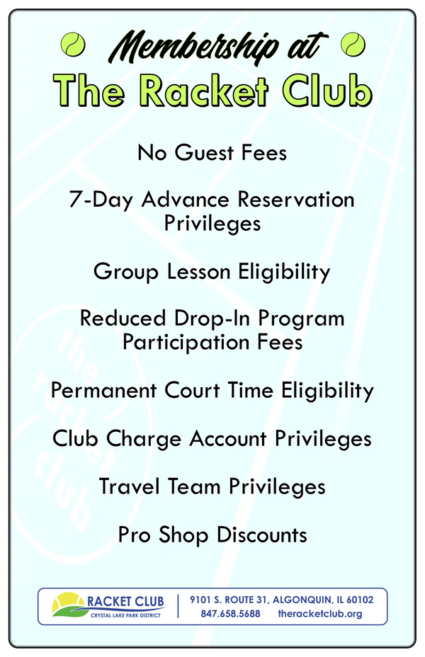 Browse for information about The Racket Club in the Crystal Lake Park District digital brochure.