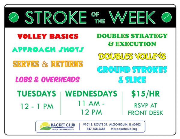 Need a class or group suggestion? Talk to our Tennis Director, Conni Stinek, at 847-658-5688 ext. 2015 to find the right class or group for you.