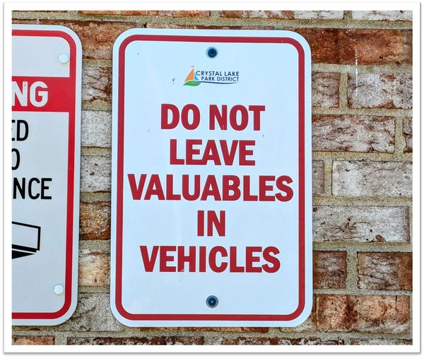 A sad reality is that the bad people out there are looking to take things that aren't theirs. Parking lots, especially at recreational facilities where people don't like being encumbered with accoutrements, make especially attractive targets for theft. Make life difficult for thieves by not leaving anything visible in your car, and they'll have no reason to break any windows!